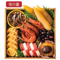 ☆一の重に…おせち料理の定番、かまぼこ・伊達巻・数の子・黒煮豆・えび・きんとん・田作り等。味付け数の子は希少な北海道産を使用しています。